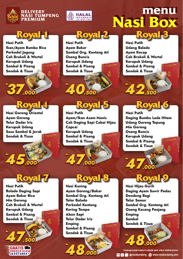 - Minimal pemesanan 30 box/menu